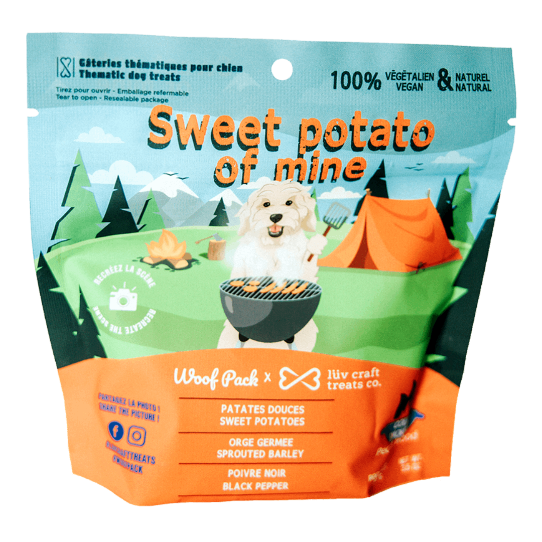 Treats are handmade in small batches and dehydrated to retain natural color. Made with food-grade ingredients sweet potatoes, barley flour, seasoning (pepper).
